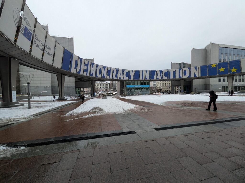 Durch einen Schneesturm bahnten wir uns am ersten Vormittag den Weg zum EU-Parlament.