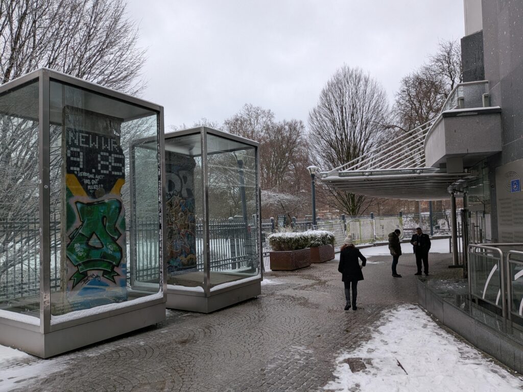 Nach dem Abstecher ins Besucherzentrum ging es direkt vorm Eingang des EU Parlamentsgebäudes (Paul-Henri Spaak Gebäude) vorbei an zwei Stücken der Berliner Mauer, die uns als Berliner sehr bekannt vorkahmen. Es war schön zu sehen, dass dieser Teil der deutschen Geschichte auch auf so einer großen Ebene wie der EU gewürdigt und als Inspiration für offene Grenzen und ein gemeinsames Miteinander in der Zukunft wahrgenommen wird.