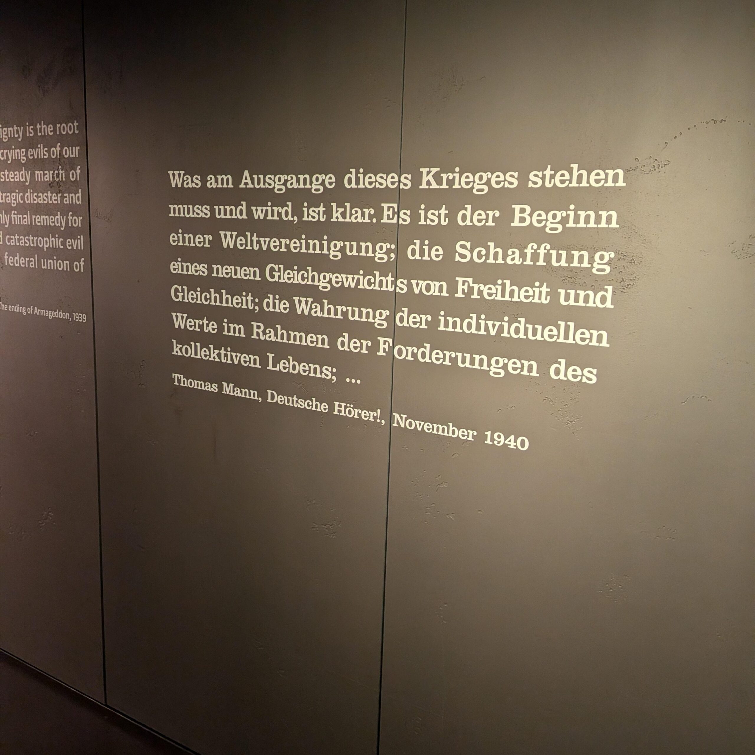Wir betraten das Besucherzentrum der EU und fingen an uns über die Standorte, die grundsätzliche Funktionsweisen und die Historie der EU zu informieren. Dabei stießen wir auf Zitate aus der Gründungszeit der EU, die heute wie damals zwar immer noch richtungsweisend, aber aktuell mit einem anderen Beigeschmack zu lesen sind.