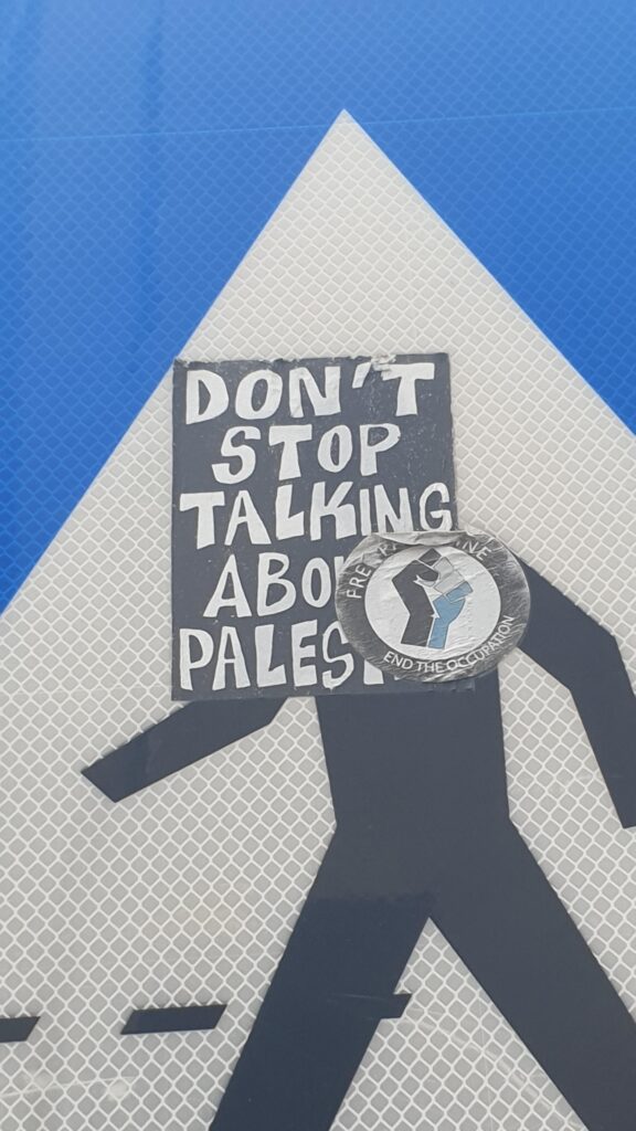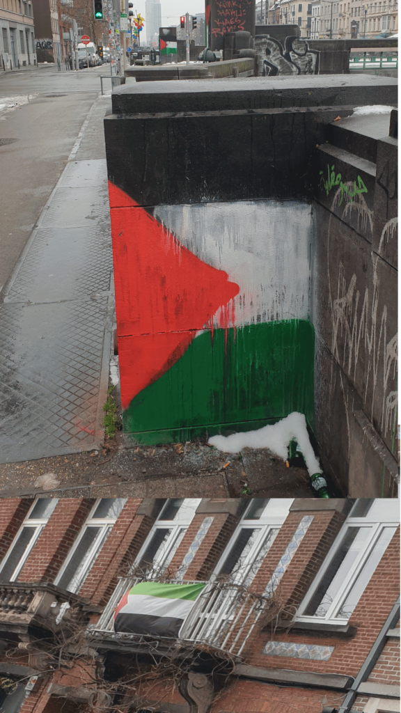 In Brüssel zeigte sich entsprechend am ersten Tag ein auffälliger inhaltlicher Schwerpunkt im öffentlichen Raum: Politische Graffiti und Sticker bezogen sich nahezu ausschließlich auf den Krieg in Gaza. Besonders bemerkenswert war, dass diese Darstellungen durchgehend pro-palästinensische Positionen einnahmen. Im Vergleich zum deutschen Stadtbild stellt dies einen deutlichen Unterschied dar. Überklebungen oder entfernte Sticker ließen sich nicht erkennen, ob sie aus politischen Gegensätzen heraus oder aus anderen Gründen vorgenommen worden waren; in jedem Fall dominierte eine klare visuelle Erzählung.