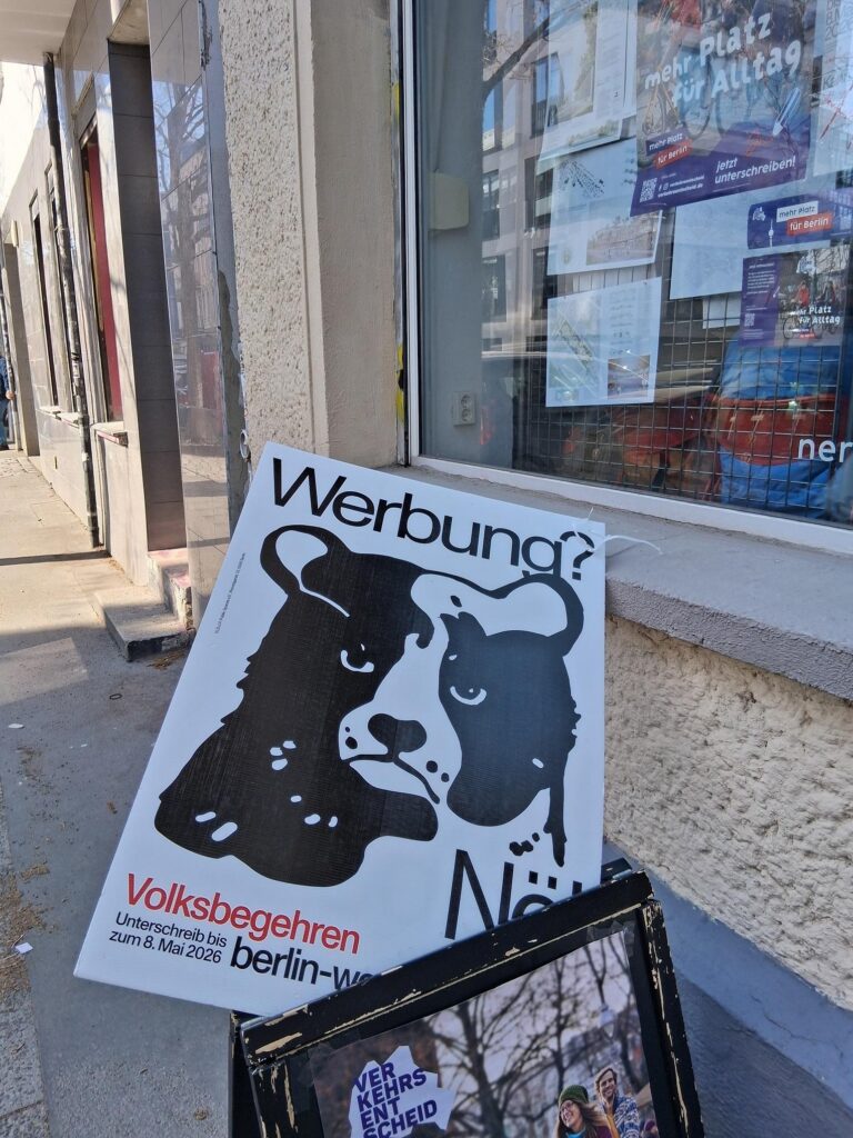 What is the „Berlin Ad-Free“ referendum all about? We’ll find out today during our German-French project week, „Whose streets? Our streets! Questioning advertising in public spaces.“ We’re heading to Friedrichshain to visit the Berlin Ad-Free campaign office and meet with campaign activists. But before that we have a workshop about sexism and rascism in advertising. Here’s a report from one of the participants: