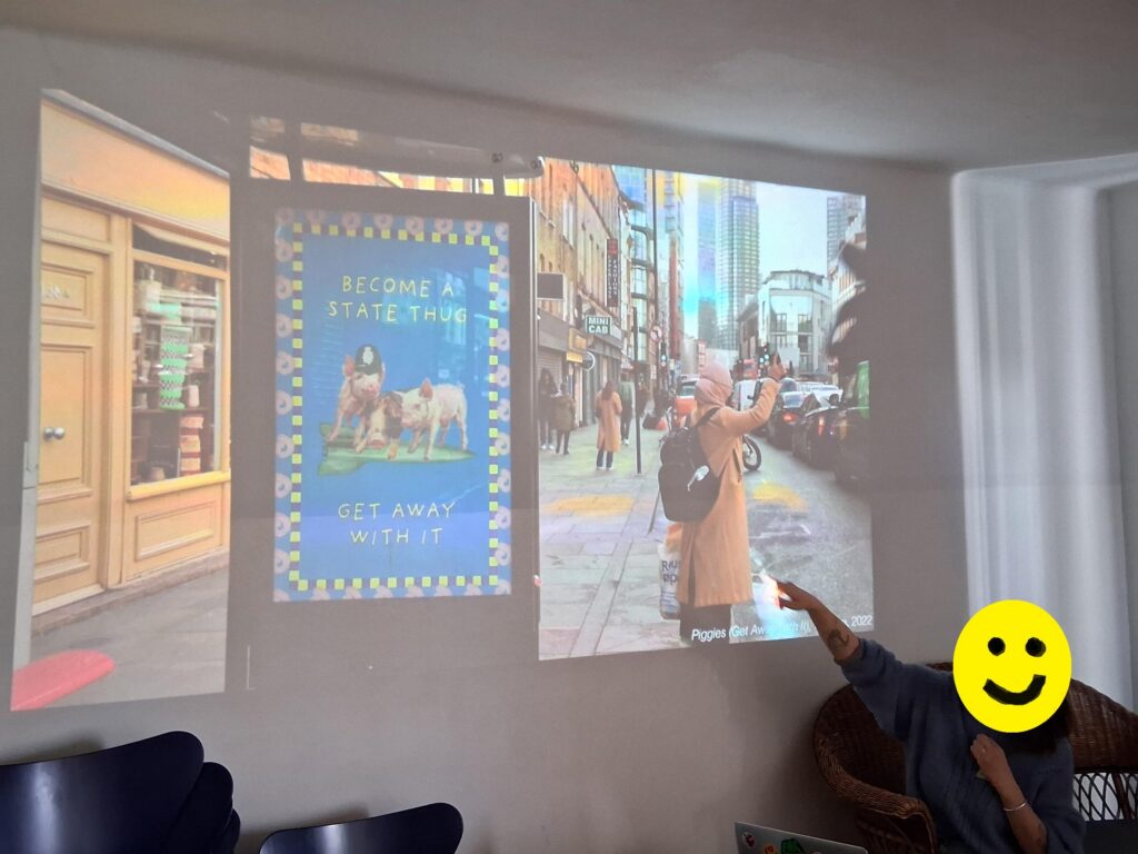 After this exercise we had a presentation of “Art in the public sphere”. This presentation was made by Camille. She is a photographer and a designer and she presented her work in London, in Paris. How can art replace Advertisment.