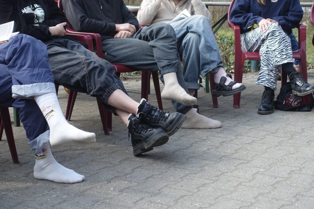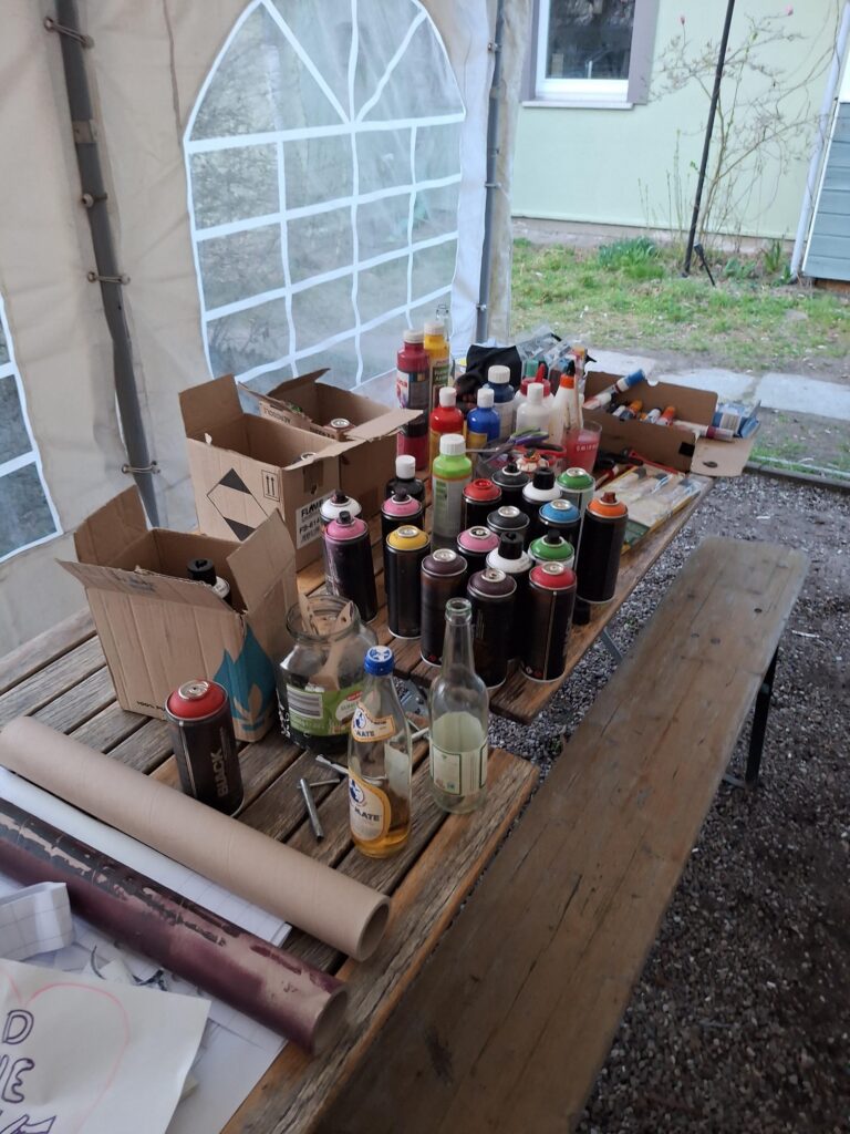 Our Franco-German project week, „Whose streets? Our streets! Questioning advertising in public spaces,“ was a whirlwind today. It was a skills-sharing and workshop day! We made our own posters, created foil graffiti, learned about legal issues surrounding street art, and I’m sure I’ve forgotten something. Here’s a report from one of the participants: