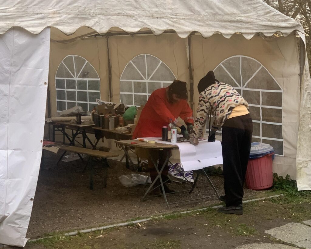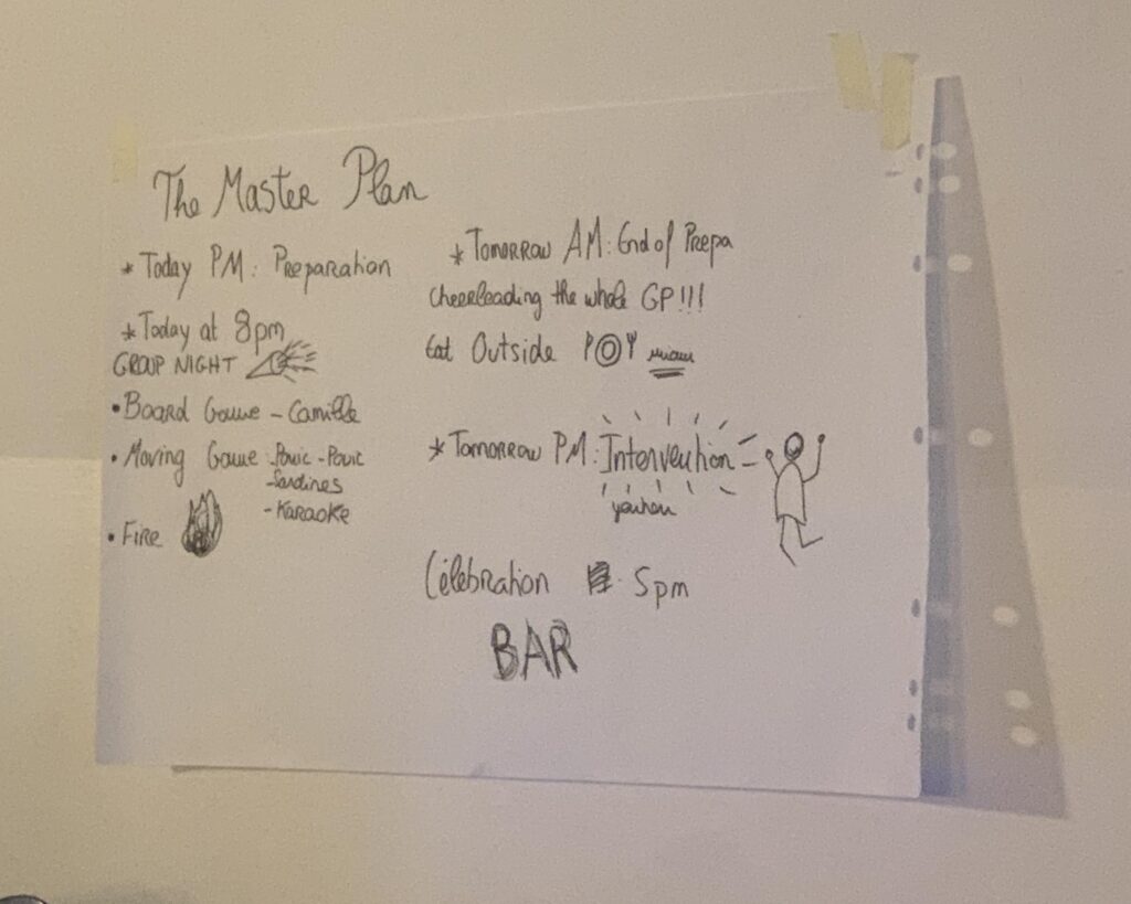 In our joint German-French project week, „Whose streets? Our streets!“ on this penultimate day of the program we are preparing the materials for tomorrow’s interventions and performances in public spaces with a great deal of initiative, craftsmanship, and artistic skill. Nothing can go wrong, because we have a fantastic master plan. And we had workshops on photography and press work. Here is a photo report from one of the participants: