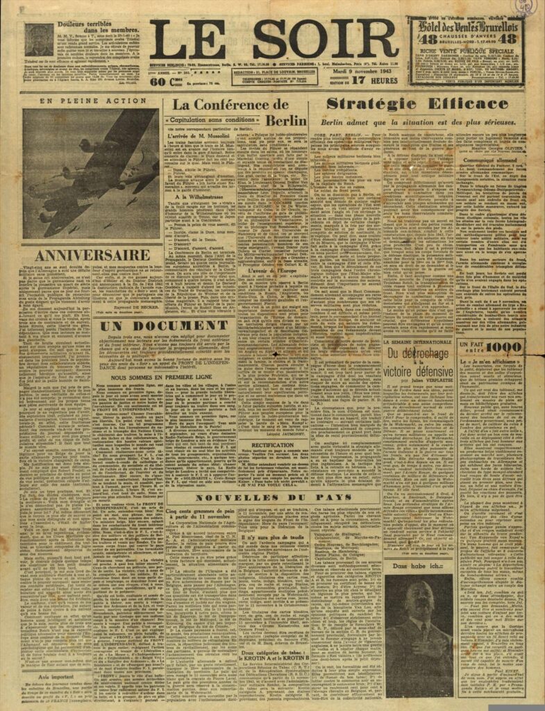 Die Freunde diskutierten zuerst ergebnislos das Kapern des Rundfunkes. Nach einigen belgischen Bieren fiel ihnen jedoch auf, dass ihr Wissen und ihre Kontakte vielleicht ausreichen würden, Marcs alte Arbeitsgeber*in, die Zeitung „ Soir“ (Der Abend) zu kapern. Belgiens damals größte Tageszeitung mit einer Auflage von 250.000 Exemplaren war seit dem Beginn der deutschen Herrschaft fest in der Hand von Nazi-Kollabarateuren wie Herge, dem etwa gleichaltrigen Erfinder von „Tim & Struppi“. „Wäre es nicht wundervoll, dieses Sprachrohr der deutschen Propaganda am Jahrestag die deutsche Niederlage verkünden zu lassen?“
